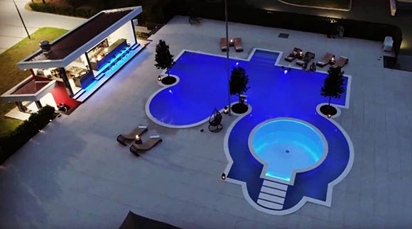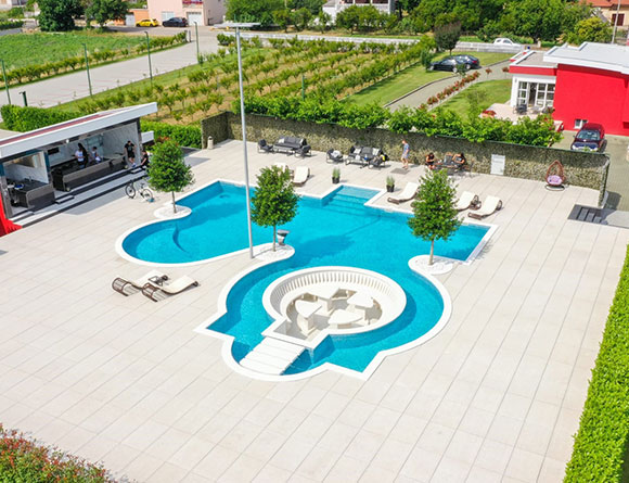 Površina: 8000 m2 Broj soba: 3, Broj kreveta: 6 (max 8) Kupaonica: 2 u Villi + 4 na bazenu Bazen: 400m2 Dodatci bazenu: vanjska kuhinja s roštiljem, vanjski bar sa šankom, rashladne vitrine, lodmat, odvojeni toalet za muškarce i žene, kupaonica sa potrebnom kozmetikom. Garaža: 1 Vanjskih parking mjesta: 30+